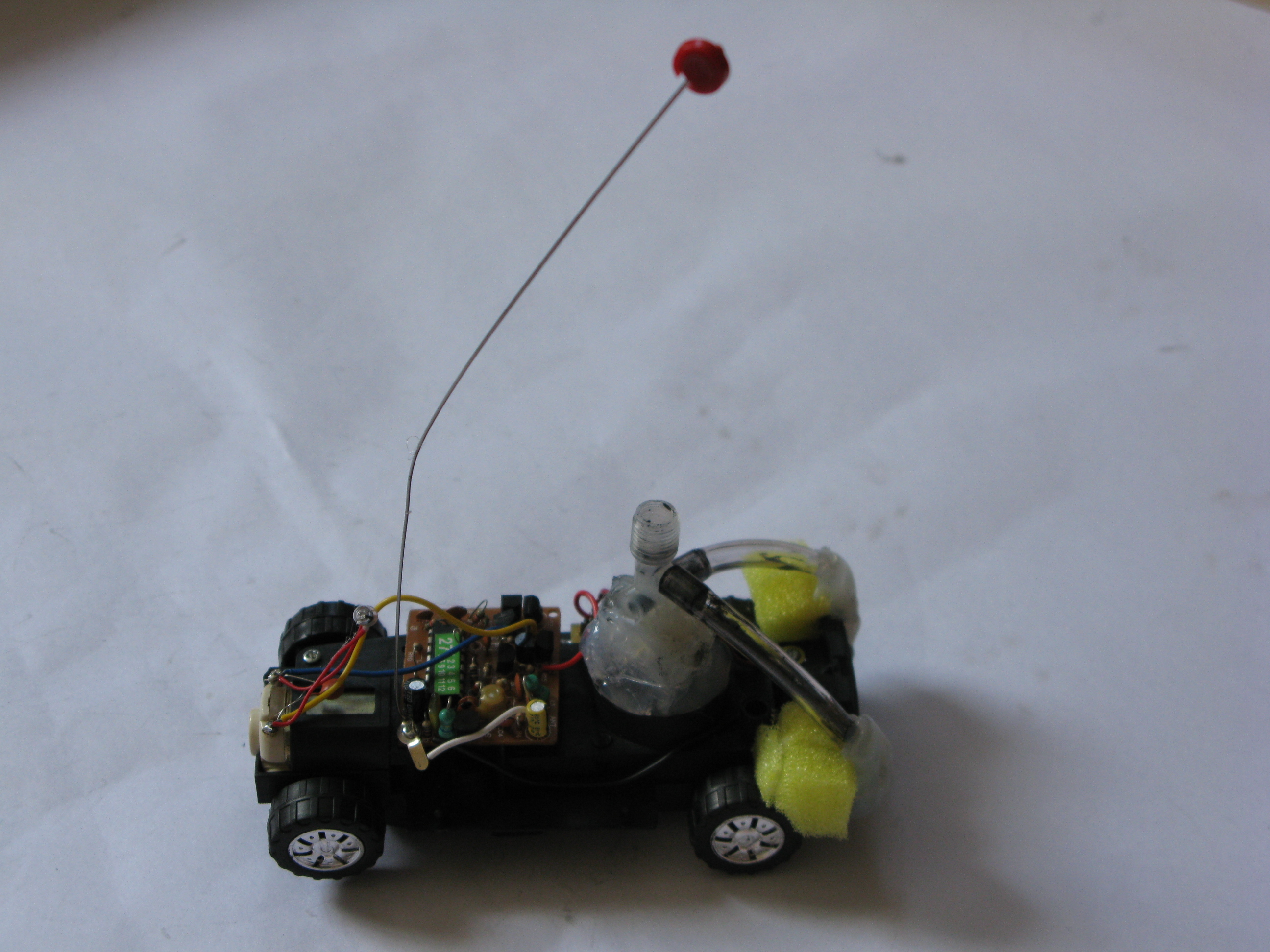 # 01 carcaça modificada de carrinho de brinquedo (contendo o receptor de sinal e o depósito de tinta)