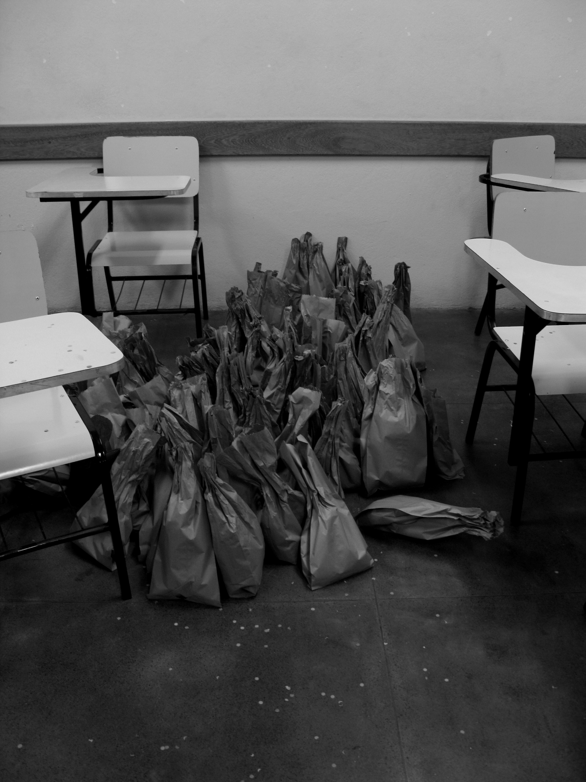 3-comprar sacos de papel/tipo saco de pão ( vendem no mínimo 100 unidades)